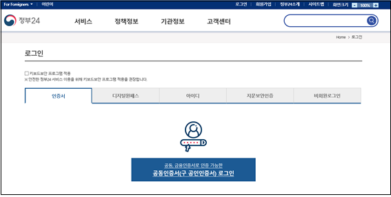 - 개인 기업의 경우 회원 가입 후 인증서 등록 진행 할 것(비회원 X)