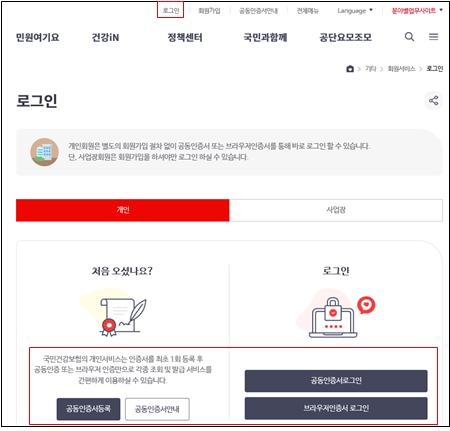 공인인증서 등록 링크 : www.nhis.or.kr
