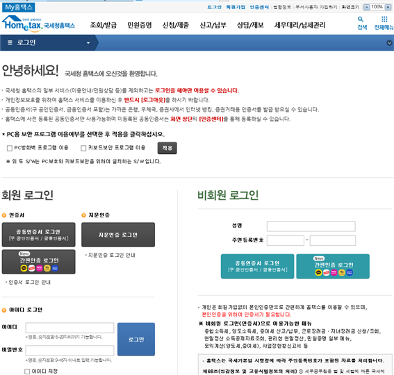 - 반드시 회원 가입 후 인증서 등록 절차 진행할 것4. 국세청홈택스