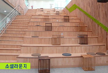 - 원목 의자와 감성 조명으로 이루어진 자유로운 소통과 토론의 공간