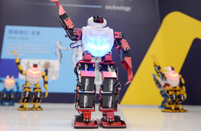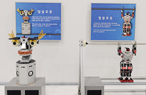 19개의 모터를 사용하여 감정표현뿐만 아니라 말하고 노래하는 얼굴로봇과 17자유도 철봉 동작을 능숙하게 하는 철봉 로봇을 볼 수 있습니다.