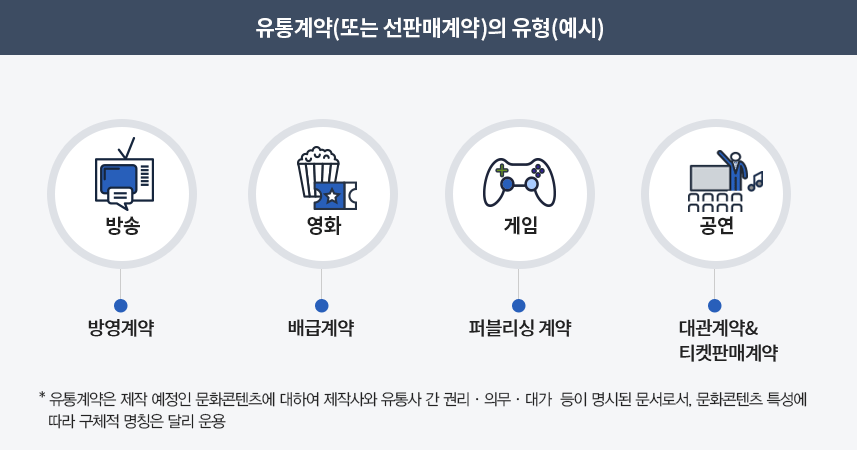 - 유통계약(또는 선판매계약) 체결後 콘텐츠 제작비의 경우, 문화산업완성보증(최대50억원, 제작비의 70% 이내)으로 지원