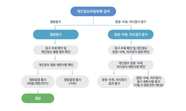 열람등요구 처리를 위해 해당 개인정보파일의 보유기관에 신청인의 개인정보를 제공하고 있습니다.
